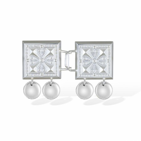 En sølje med 12 trådkantløv med påfølgende filigranblomster med grøne stener i midten. På baksiden er det sikkerhetsfunksjon på nålen, noe som gjør at det blir mindre sjanse for å miste søljen.